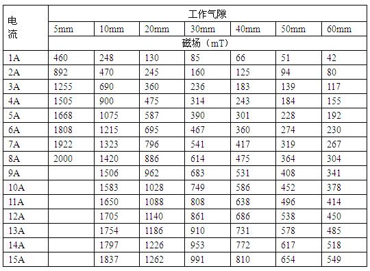 2.2、工作气隙调节轻便灵活,极面极柱一体结构,漏磁小,极面直径最大为Ф80mm(出厂60mm),工作气隙最大为60mm(其他气隙可定制)。